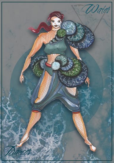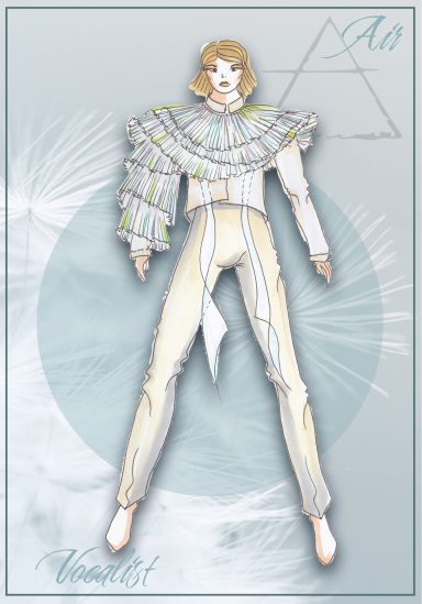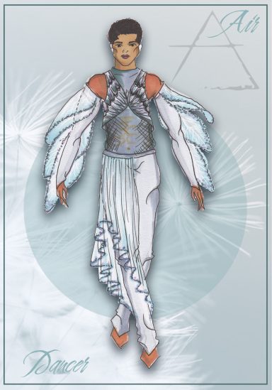 Alle vier Elemente werden durch Tänzer, Akrobaten und Sänger verkörpert. Die Kostüme drücken die jeweiligen Eigenschaften der Elemente aus und unterstützen die Akteure in ihrer jeweiligen Kunst der Darstellung.