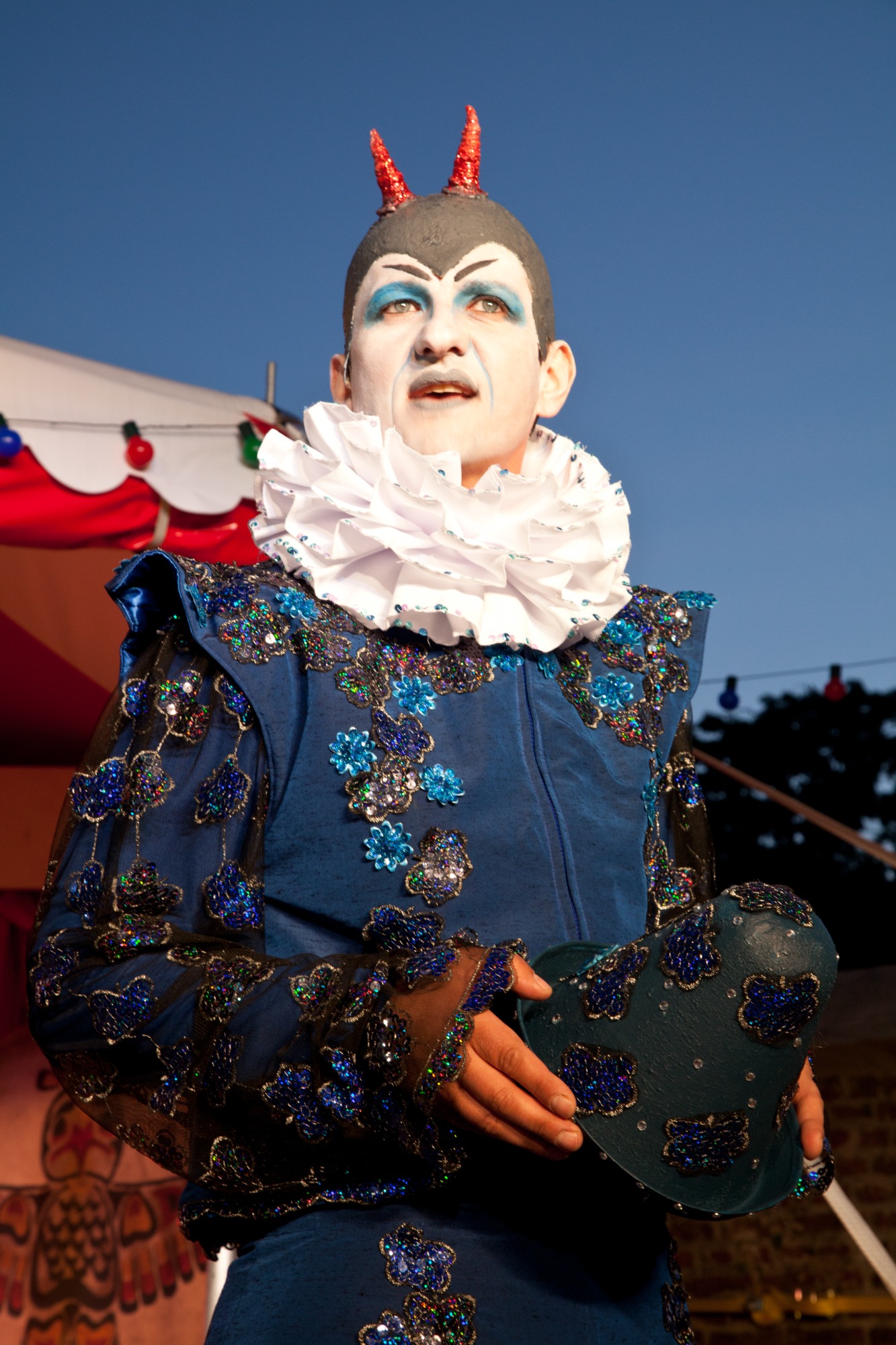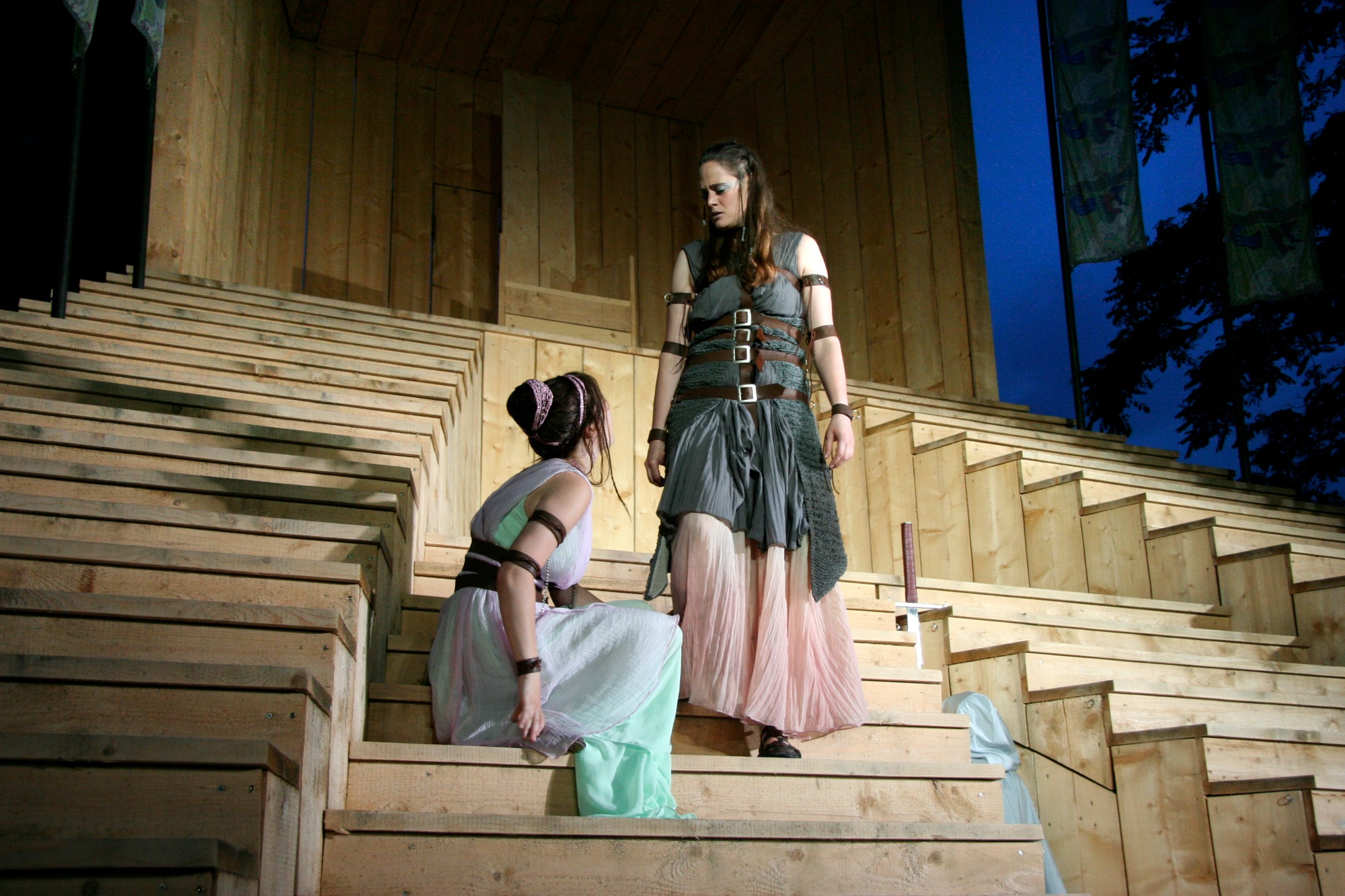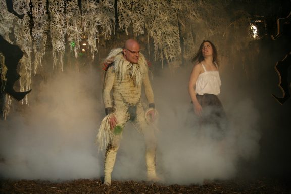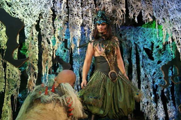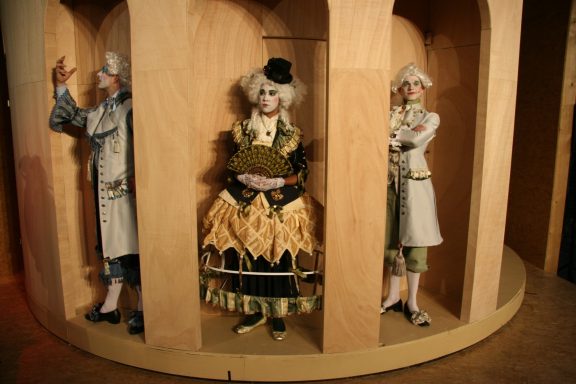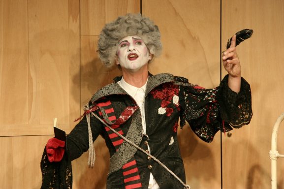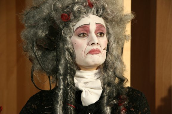 In dieser Open-Air-Produktion habe ich die Geschichte Shakespeares in die Zirkuswelt des 19. Jahrhunderts verlegt, als es noch die klassischen Artisten gab und auch die sogenannten "Freaks" - also den starken Mann, Frau ohne Unterleib, die diversen Clowns und natürlich auch die Frau mit Bart, die in dieser Produktion die Rolle der Catherine, also der widerspenstigen Frau, übernimmt.