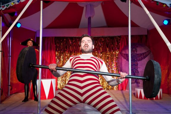 Die Bühne war ein rot-weiß-gestreiftes Zirkuszelt mit allen Features, die so ein Wanderzirkus braucht. Gespielt wurde im Innenhof der Burg Frankenberg in Aachen. Ein Traum.